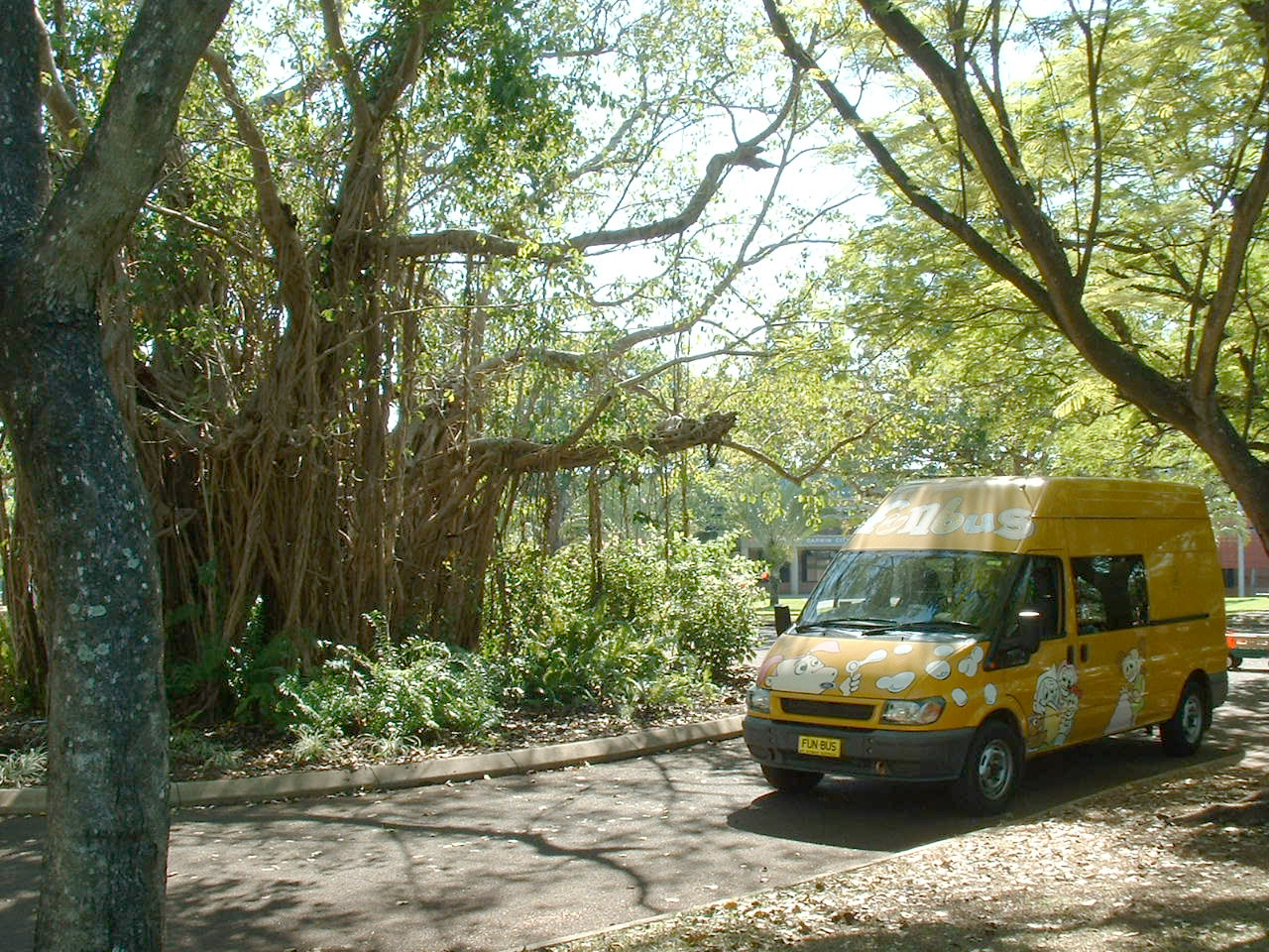Seen at Darwin Pier in August 1999 was MO3049, the Darwin Mini Bus Toyota HiAce, prominently advertising its $2 flat fare. In August naval exercises are often carried out involving four or five vessels from the Australian Royal Navy and a guest New Zealand Royal Navy craft, one of which can be seen moored behind.