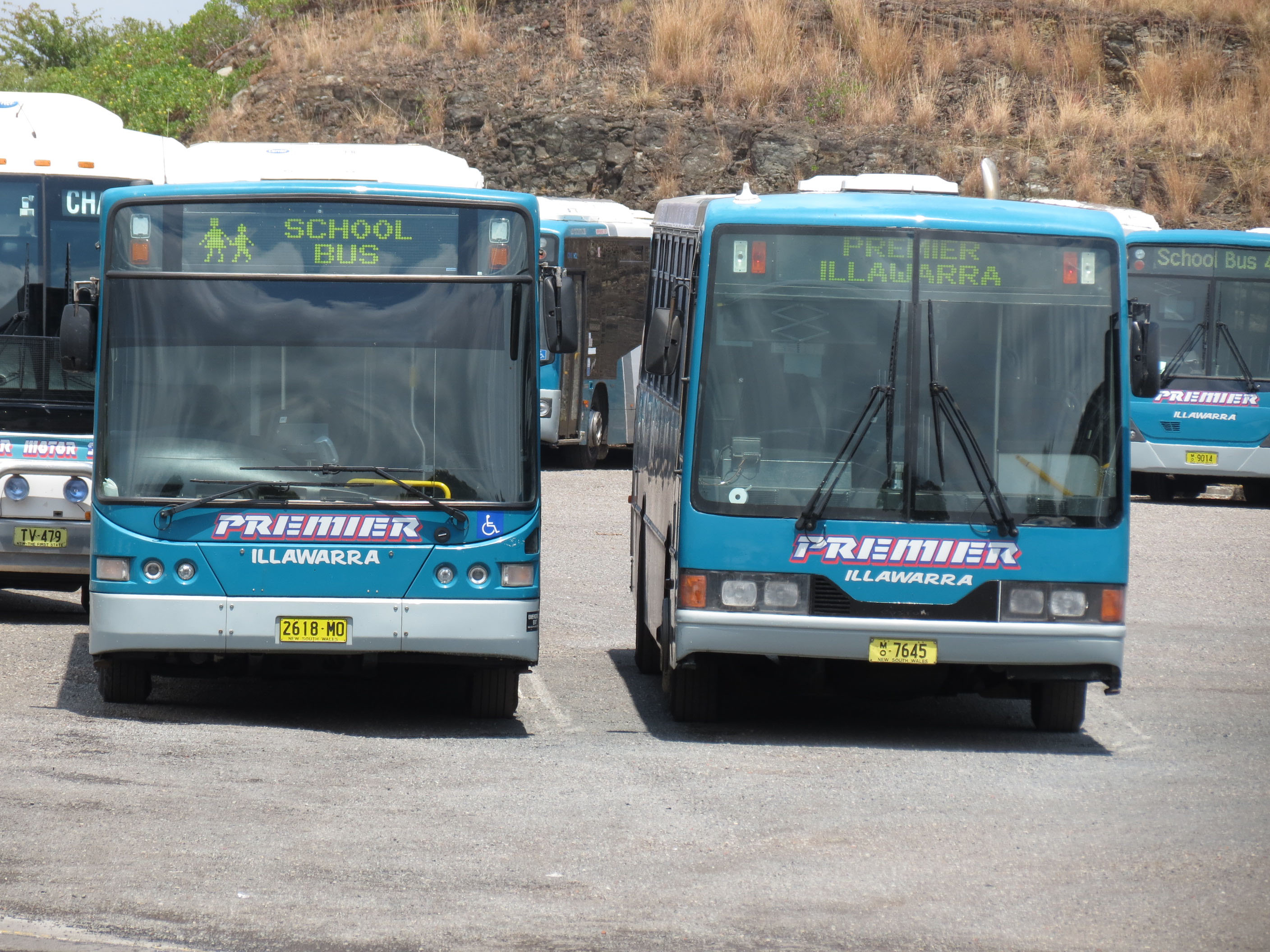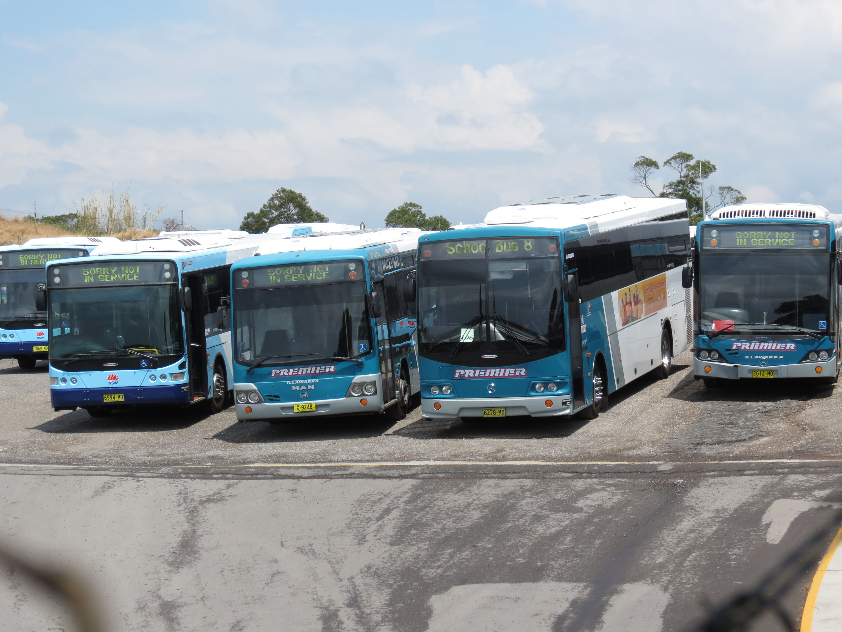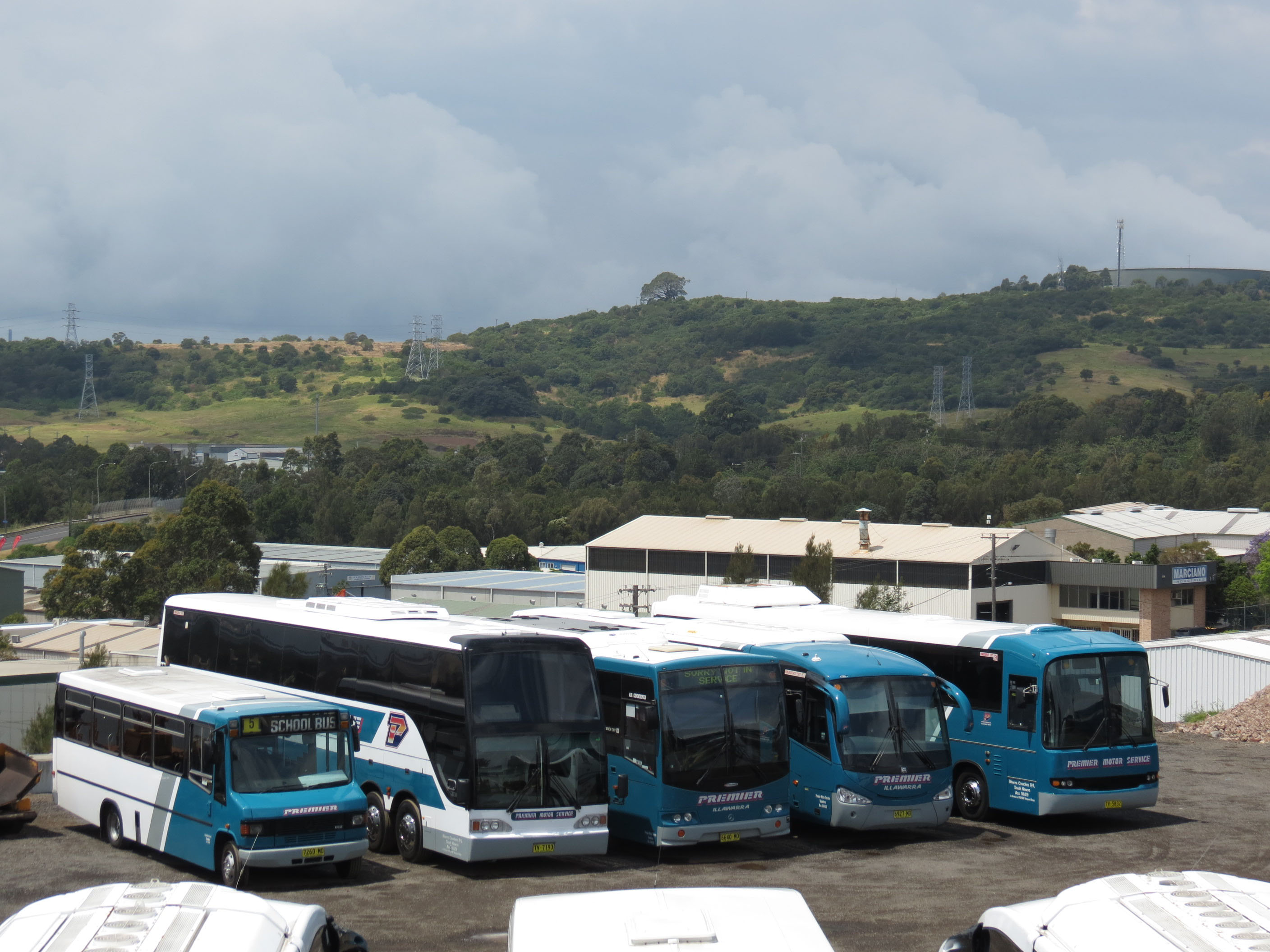The variety in the fleet is evident in this view of Custom bodied Mercedes LO812 7260MO of 1994 since sold for non psv use, next up is TV7193 a 1997 ex Murrays PMCA Royale bodied Scania K113TRB, then a more conventional Volgren SC222 bodied OH1830L, 6640MO of 2010, followed by an Irizar Century bodied Volvo B8R, 6927MO, bought the same year. Finally we have a Volgren bodied Mercedes O303 new to AAT Kings in 1994 as 25 (MO1308) in the NT. Now TV5832 it arrived with Premier from Surf City Coaches where it was 53 (503IKF) and in 2014 was sold to Nelsons Coachlines of Bankstown. |