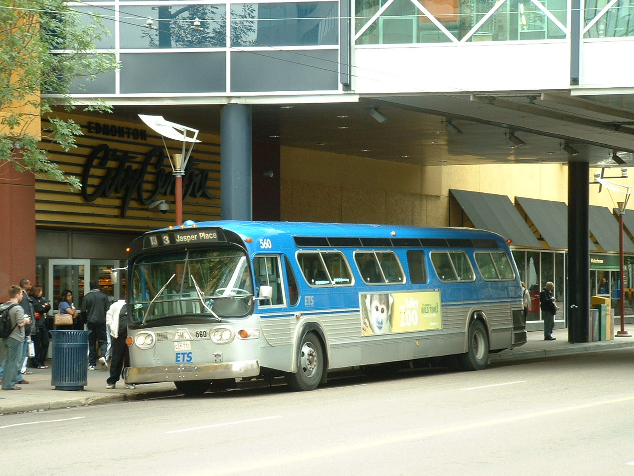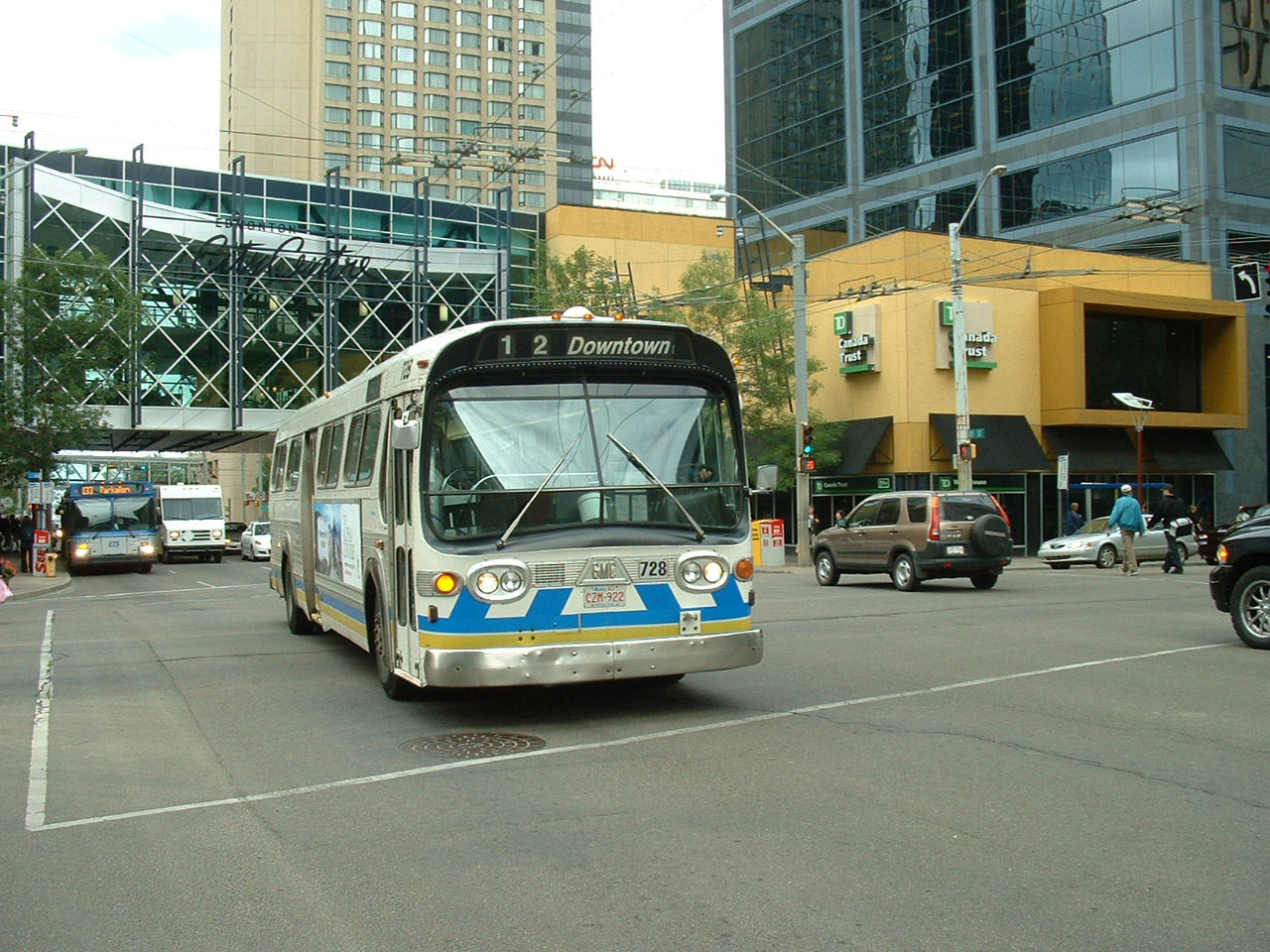 Delivered in 1960 GMC New Look 438 is seen on a tour of Edmonton in August 2007 by classic bus.