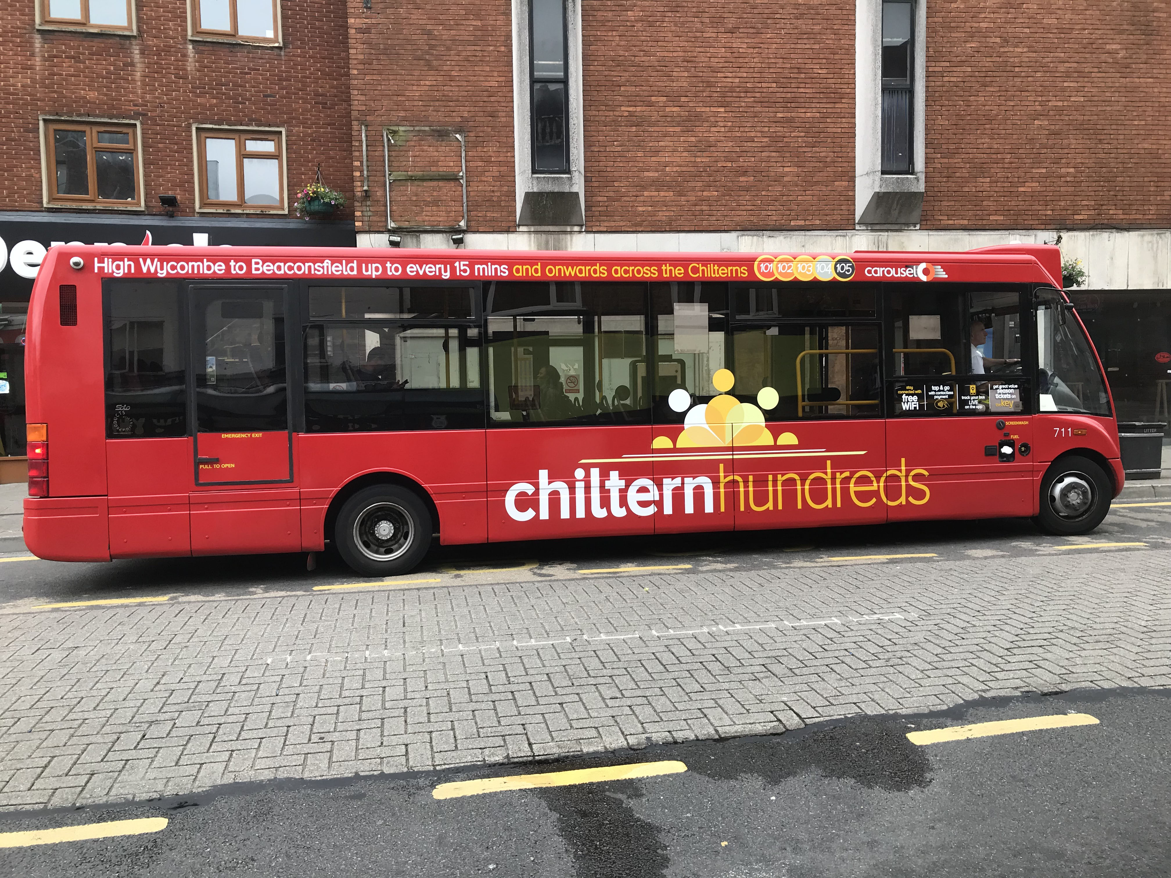 In June 2018 Solo 711 was one of several buses to acquire "Chiltern Hundreds" branding for the recast services east out of Wycombe to Beaconsfield and beyond. Together 101 to Uxbridge, 102 (the former airport A40), 103 to Watford and the 104 provided a fifteen minuye service between the two towns. The routes have changed many times since with most notably the 103 being switched from Watford to Slough!