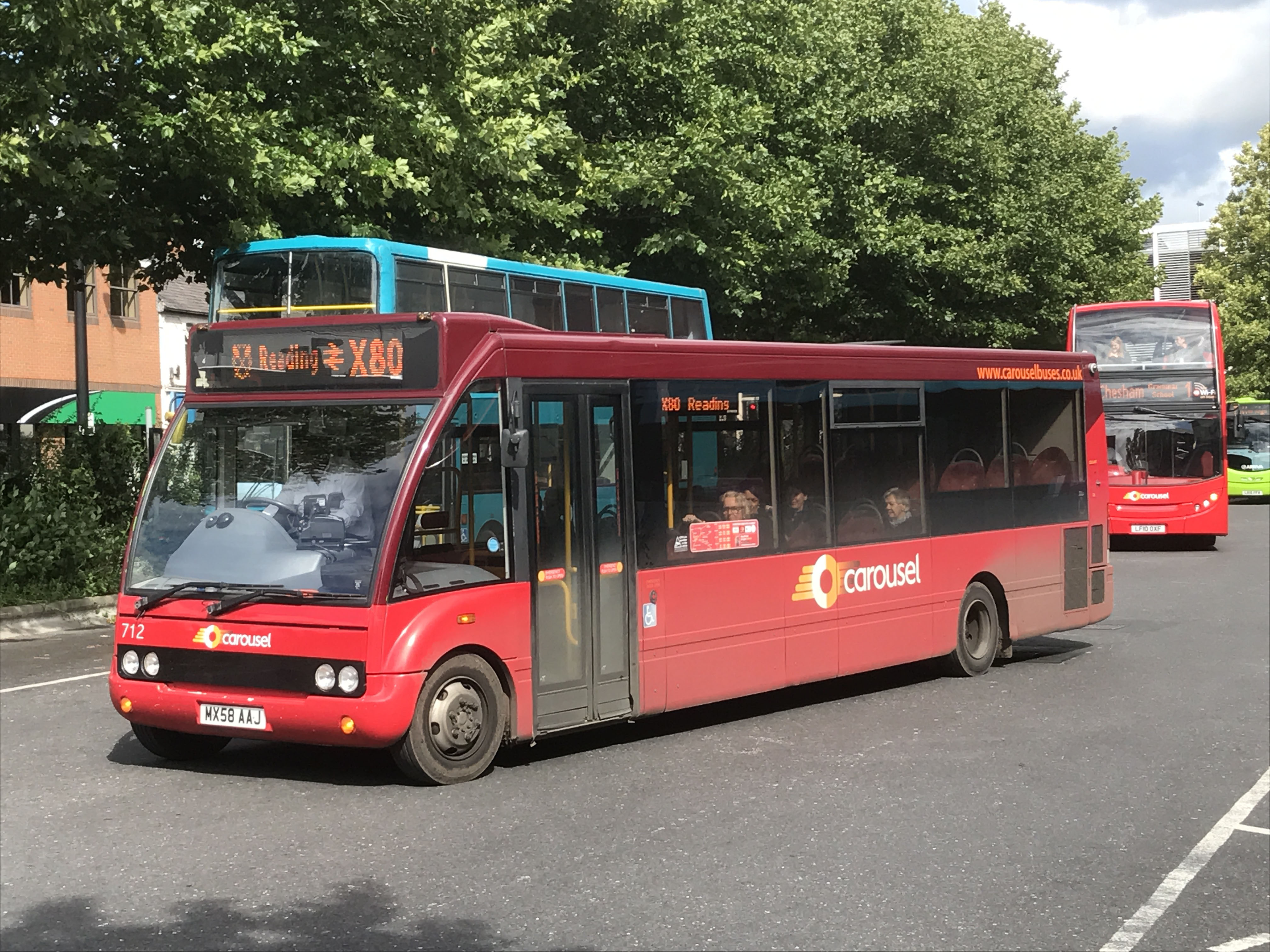 Another innovation was the X80 "Regatta Line" with several Alexander Dennis Enviro400 bodied Scanias gaining route branding for the service competing with Arriva's 800/850 to Reading. Whilst the X80 was faster it lost its time advantage with a long layover in Henley before continuing to Raeding. The service was not long lived, though when Arriva quit Wycombe in 2024 Carousel took over the Raeding routes. Unusually this little Solo, 712 (MX58AAJ), was seen leaving Wycombe Bus Station for Reading on the X80 in September 2017. Like 711 it was new to Horsburgh of Pumpherston.