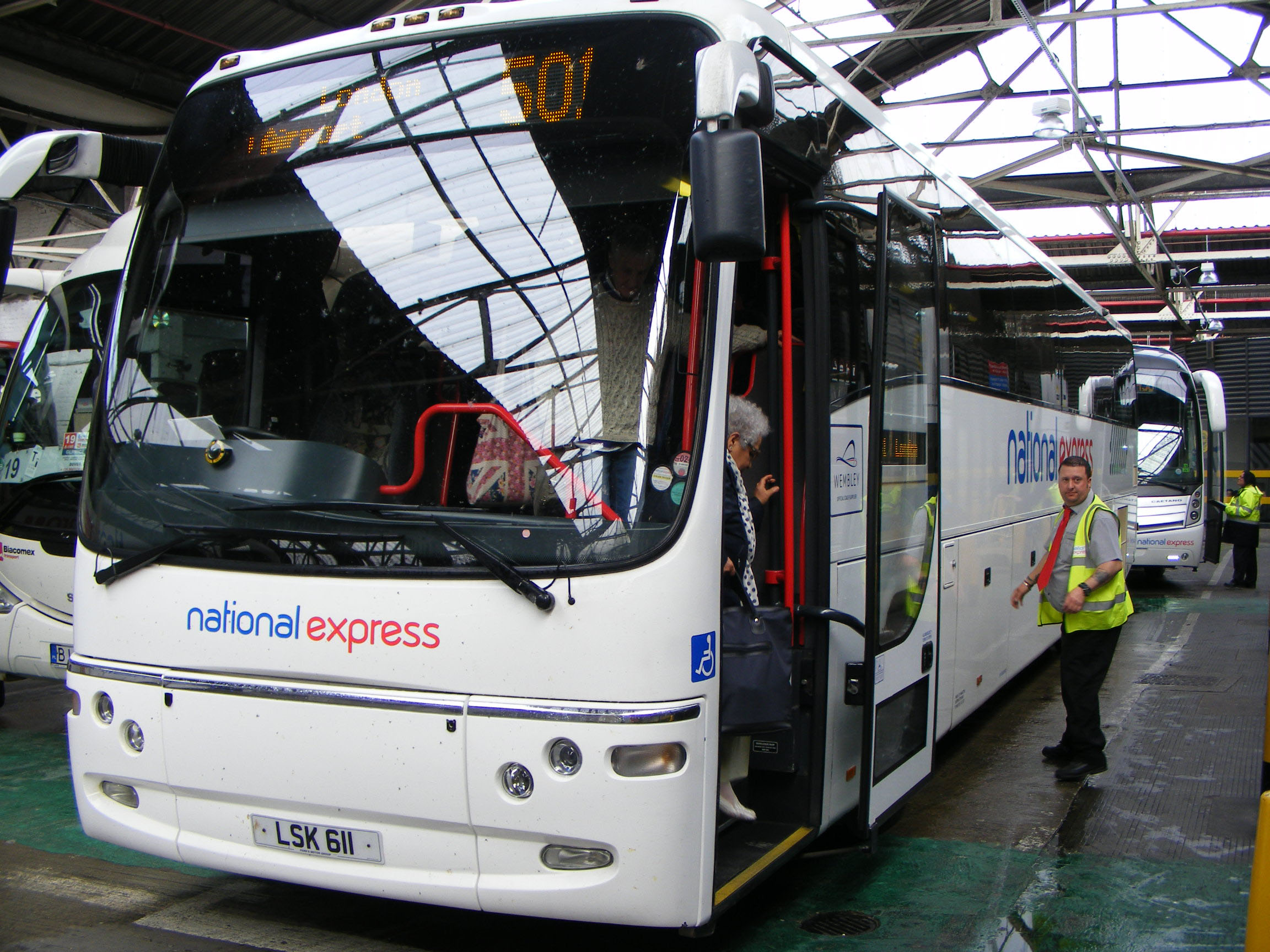 Seen a month later from the Heathrow coach waiting area, one of the leviathans is departing Heathrow followed a Scania Irizar PB also on National Express duties. Picture ref A369. |